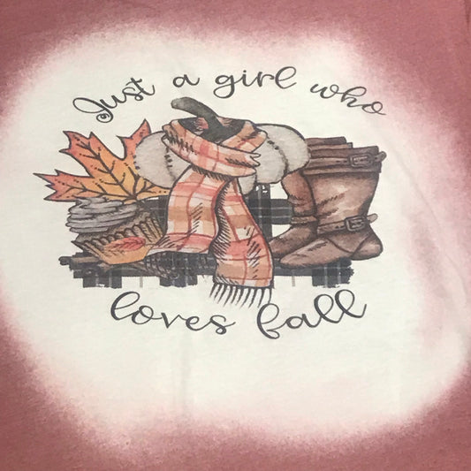 Just Girl Loves Fall Bleached Graphic Designer Short Sleeve T-Shirt