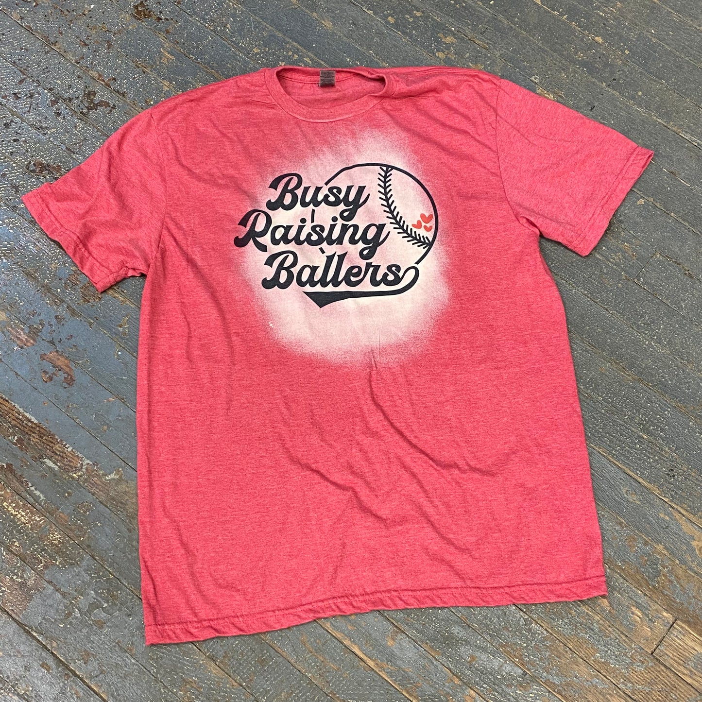 Busy Raising Ballers Bleached Graphic Designer Short Sleeve T-Shirt