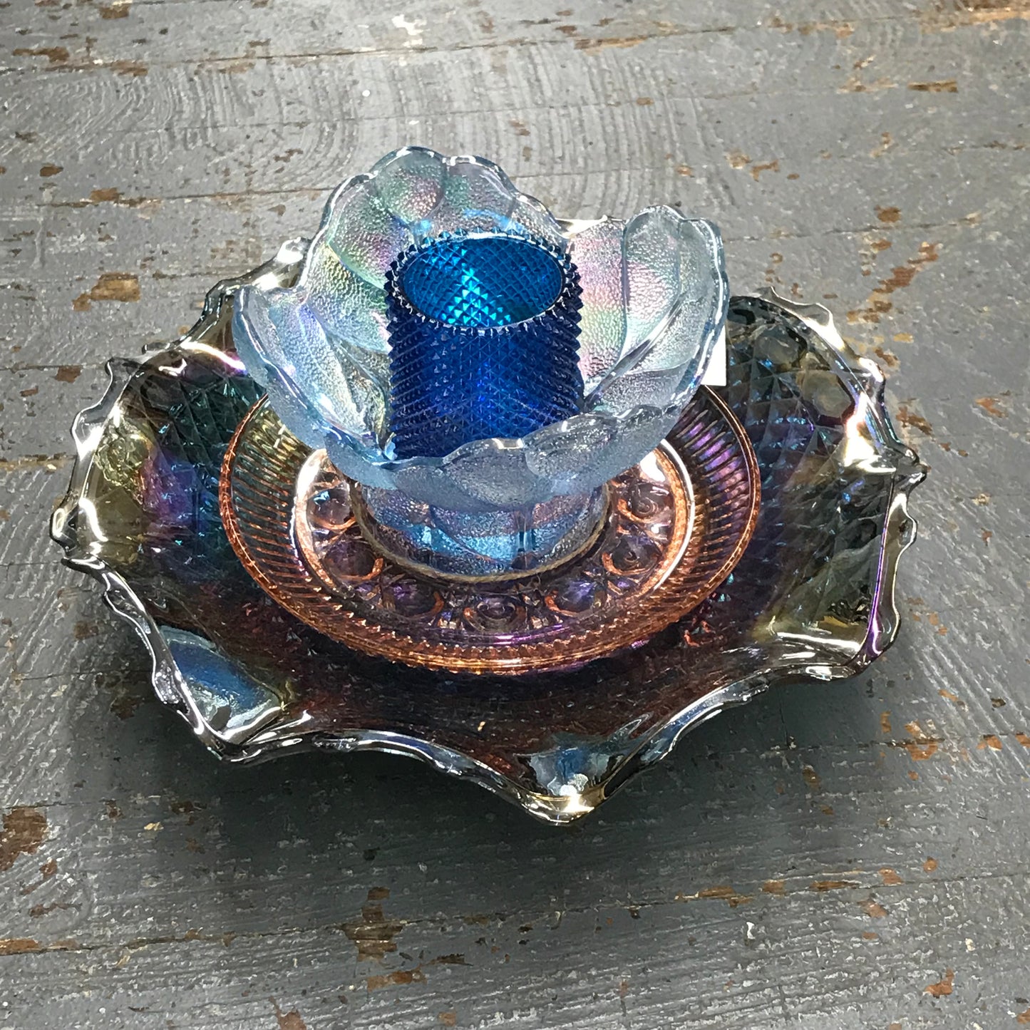 Depression Glass Garden Flower Medium Carnival Pink Blue Pastel Opaque