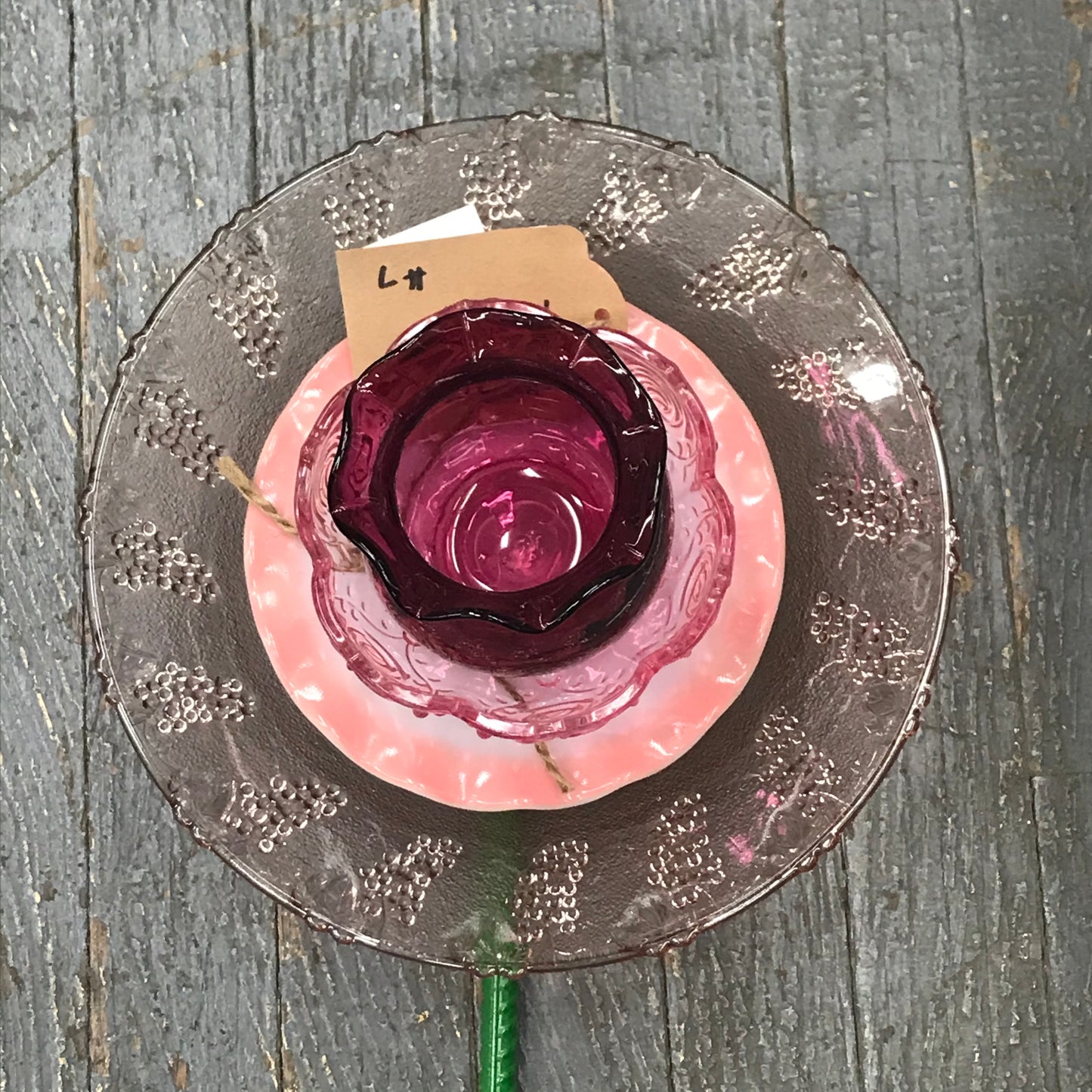 These glass garden delights are simply unique and one of a kind! Each piece is handcrafted with vintage dinnerware and depression glass to create a gorgeous flower. The design may vary slightly as each one is made by hand.