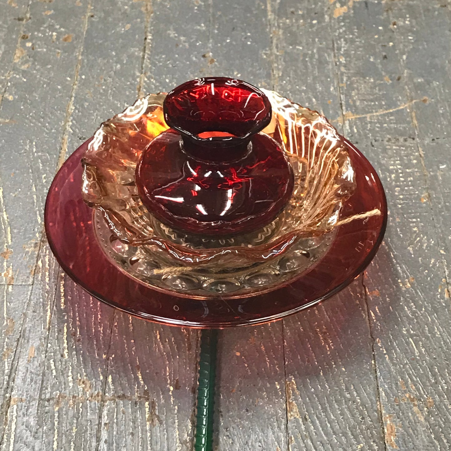 These glass garden delights are simply unique and one of a kind! Each piece is handcrafted with vintage dinnerware and depression glass to create a gorgeous flower. The design may vary slightly as each one is made by hand.