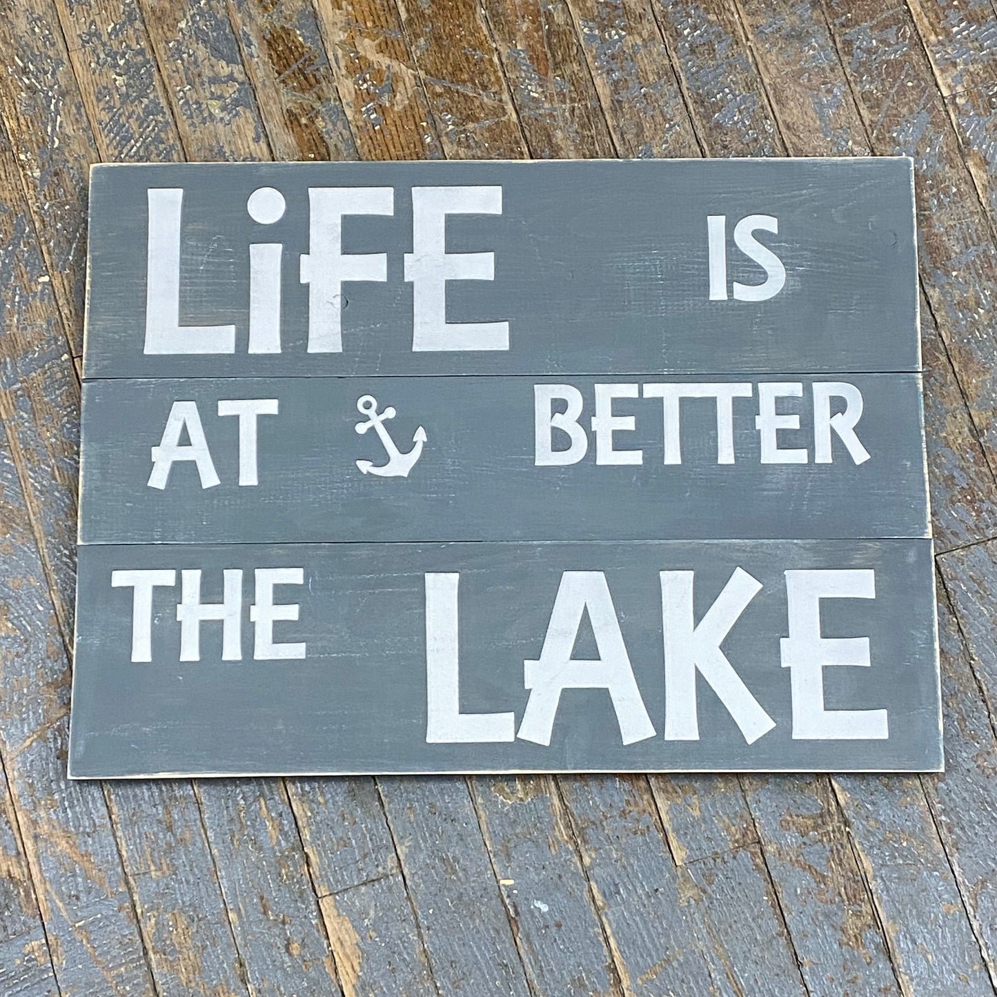 Hand Painted Wooden Nautical Sign "Life is Better at the Lake" Grey