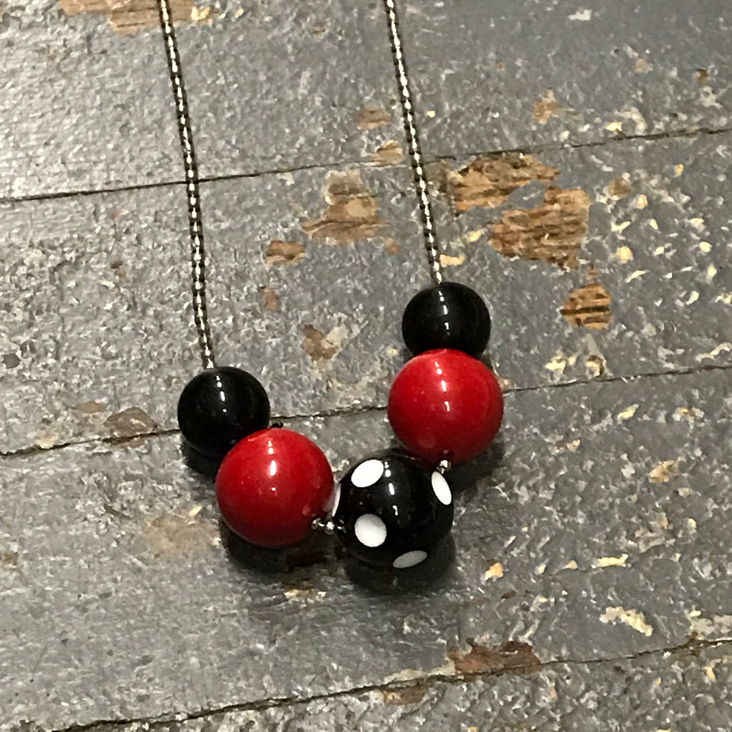 Handmade Chunky Bubble Gum Beaded Chain Necklace Red Black