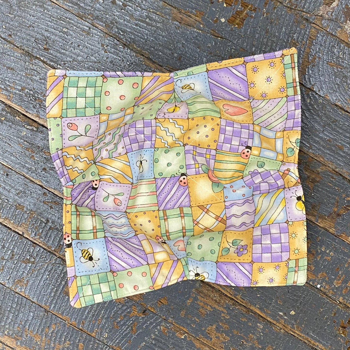 Handmade Fabric Cloth Microwave Bowl Hot Cold Pad Holder Bee Flower Yellow Plaid