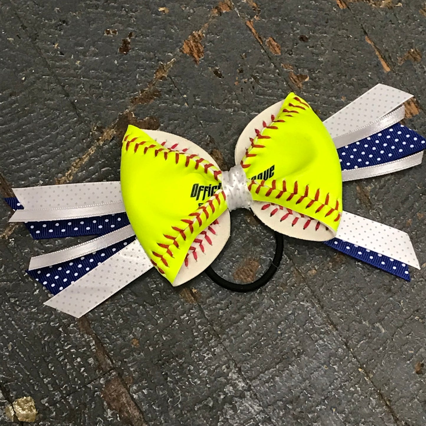 Handmade Softball Pony Tail Hair Band Bows with Softball Stitching