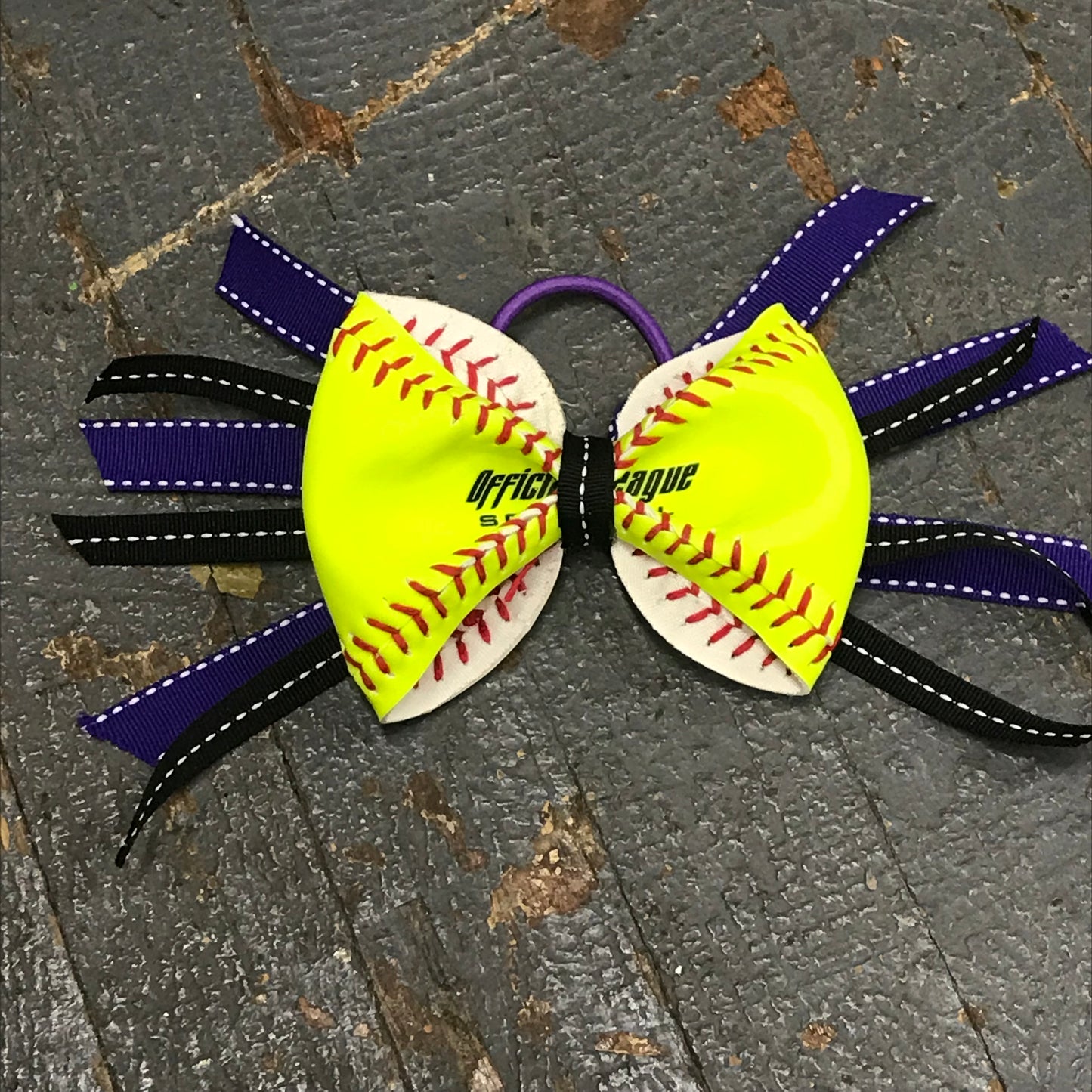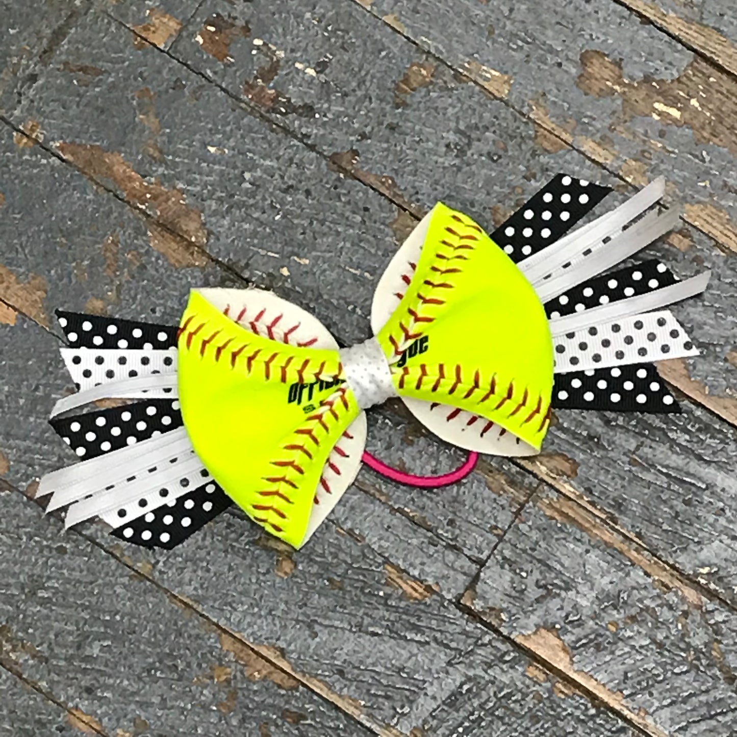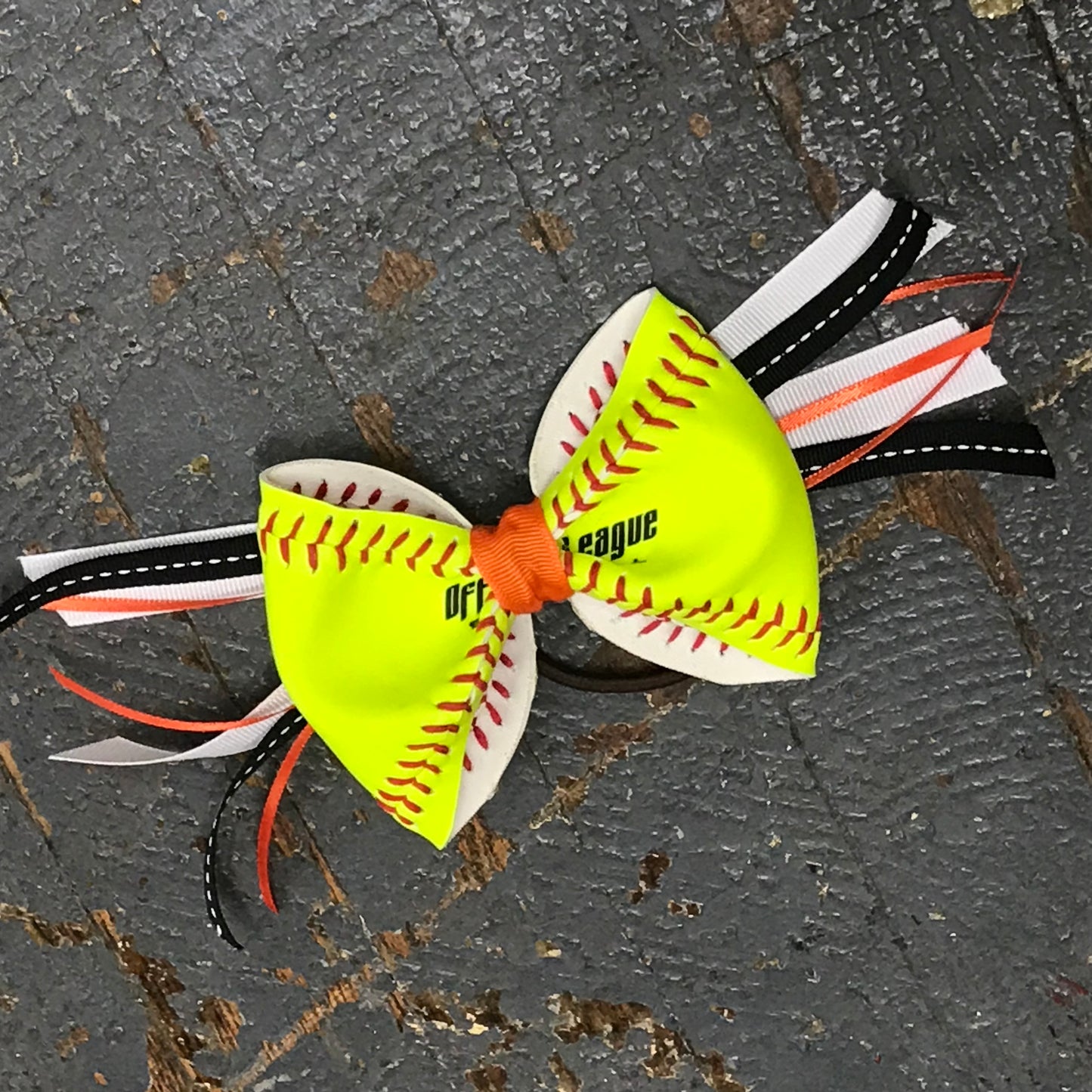 Handmade Softball Pony Tail Hair Band Bows with Softball Stitching
