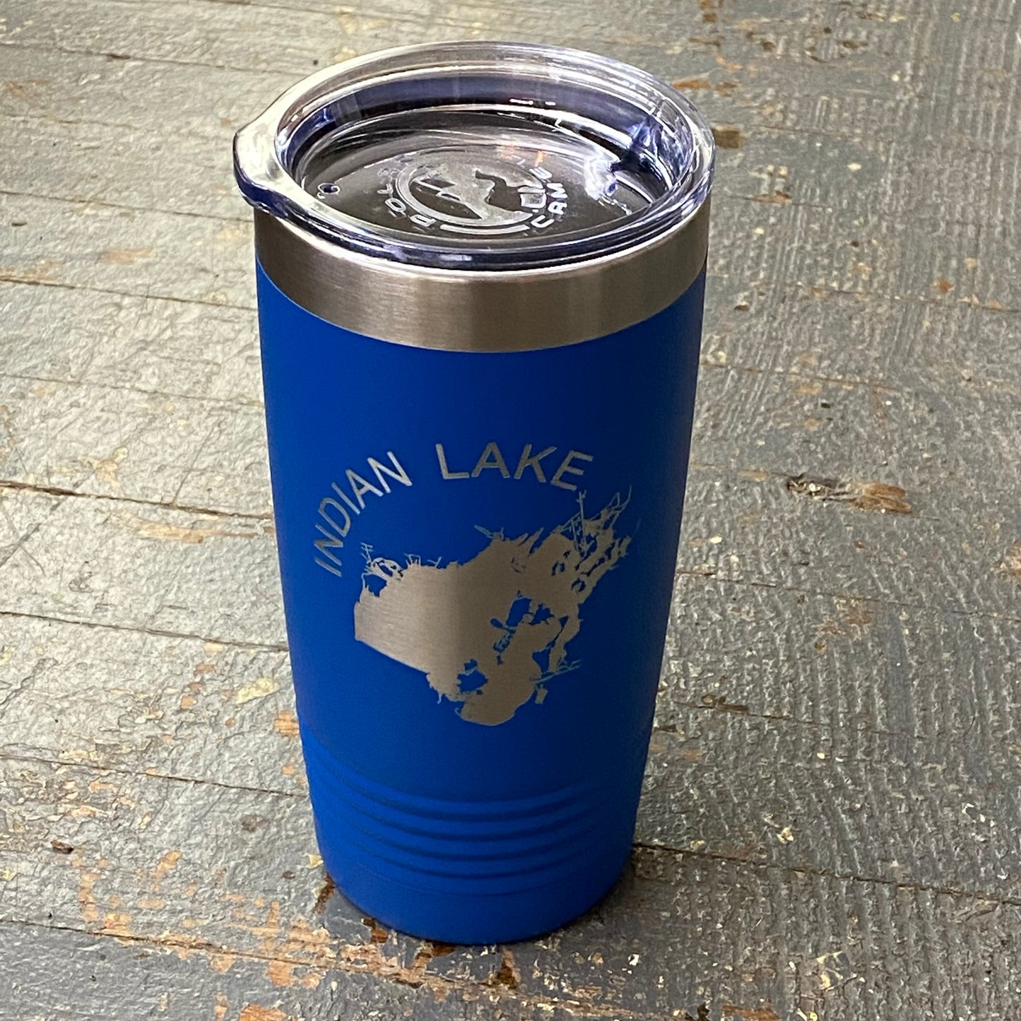 Indian Lake Map Laser Engraved Stainless Steel 20oz Wine Beverage Drink Travel Tumbler Royal Blue