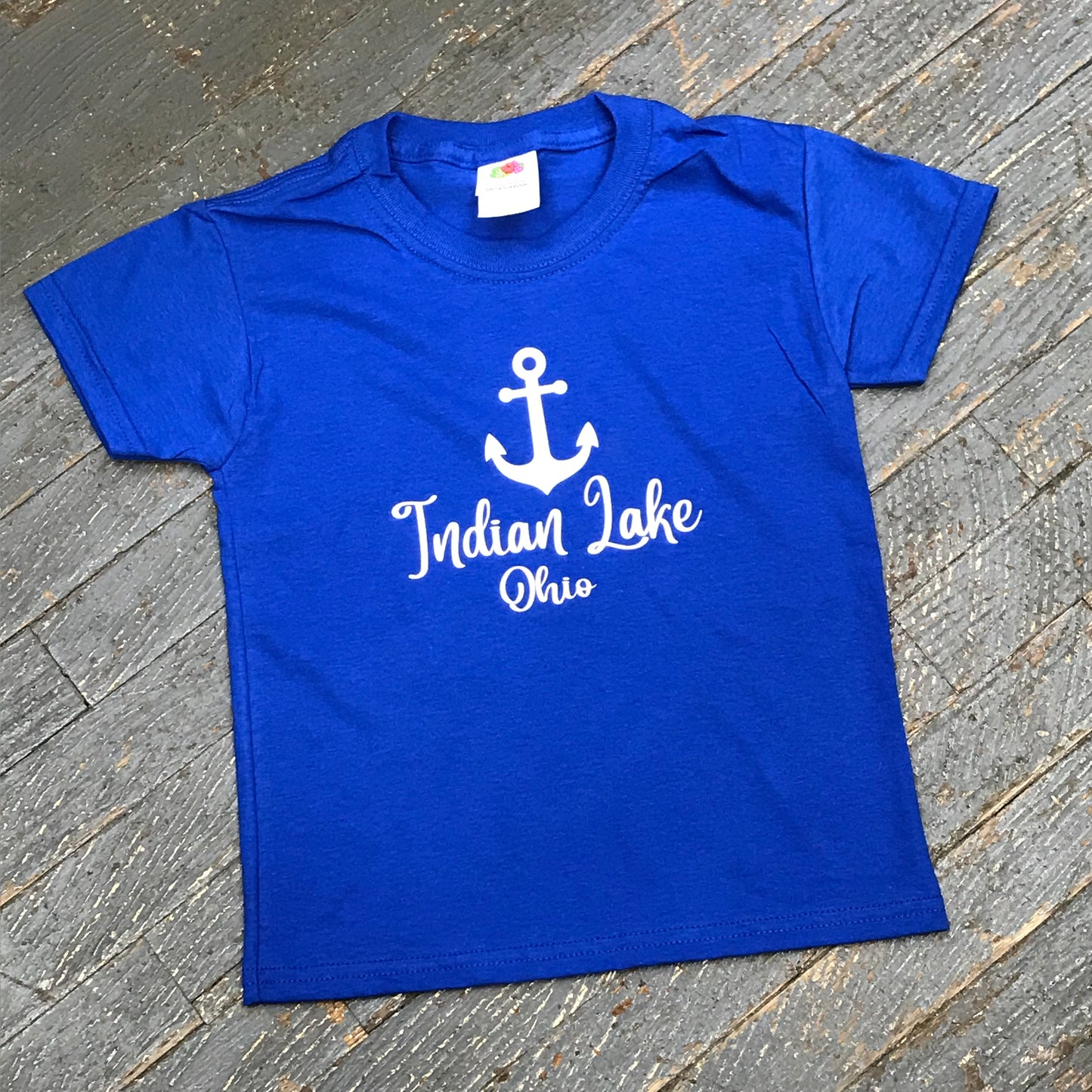 Indian Lake Ohio Nautical Anchor Graphic Designer Short Sleeve Child Youth T-Shirt Blue