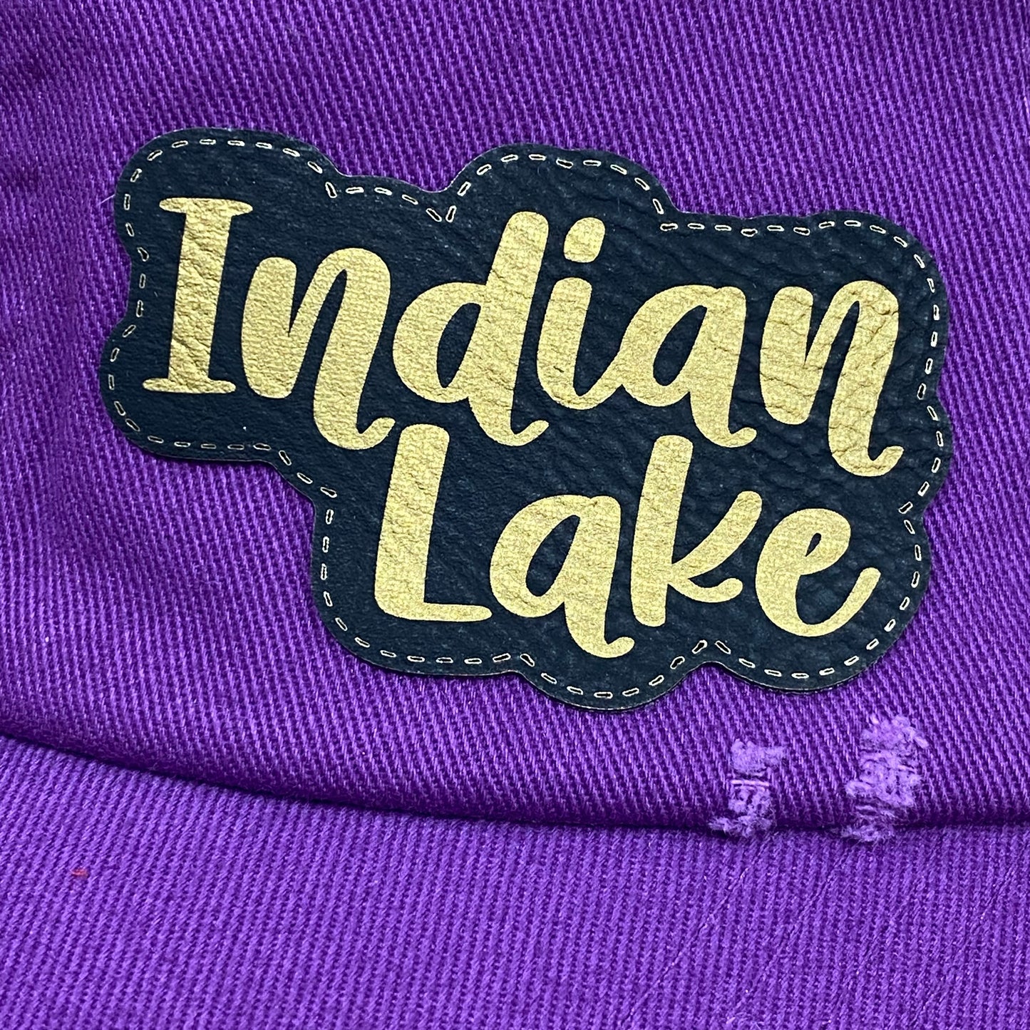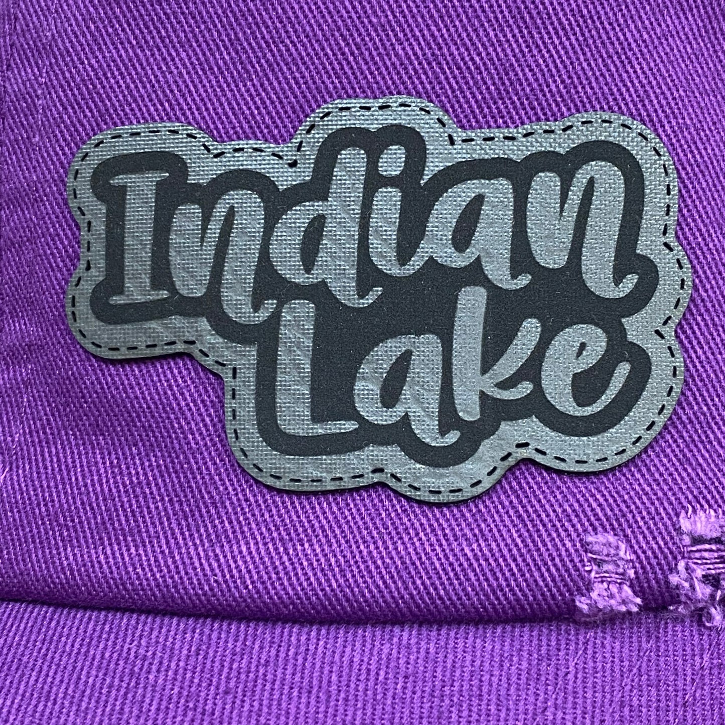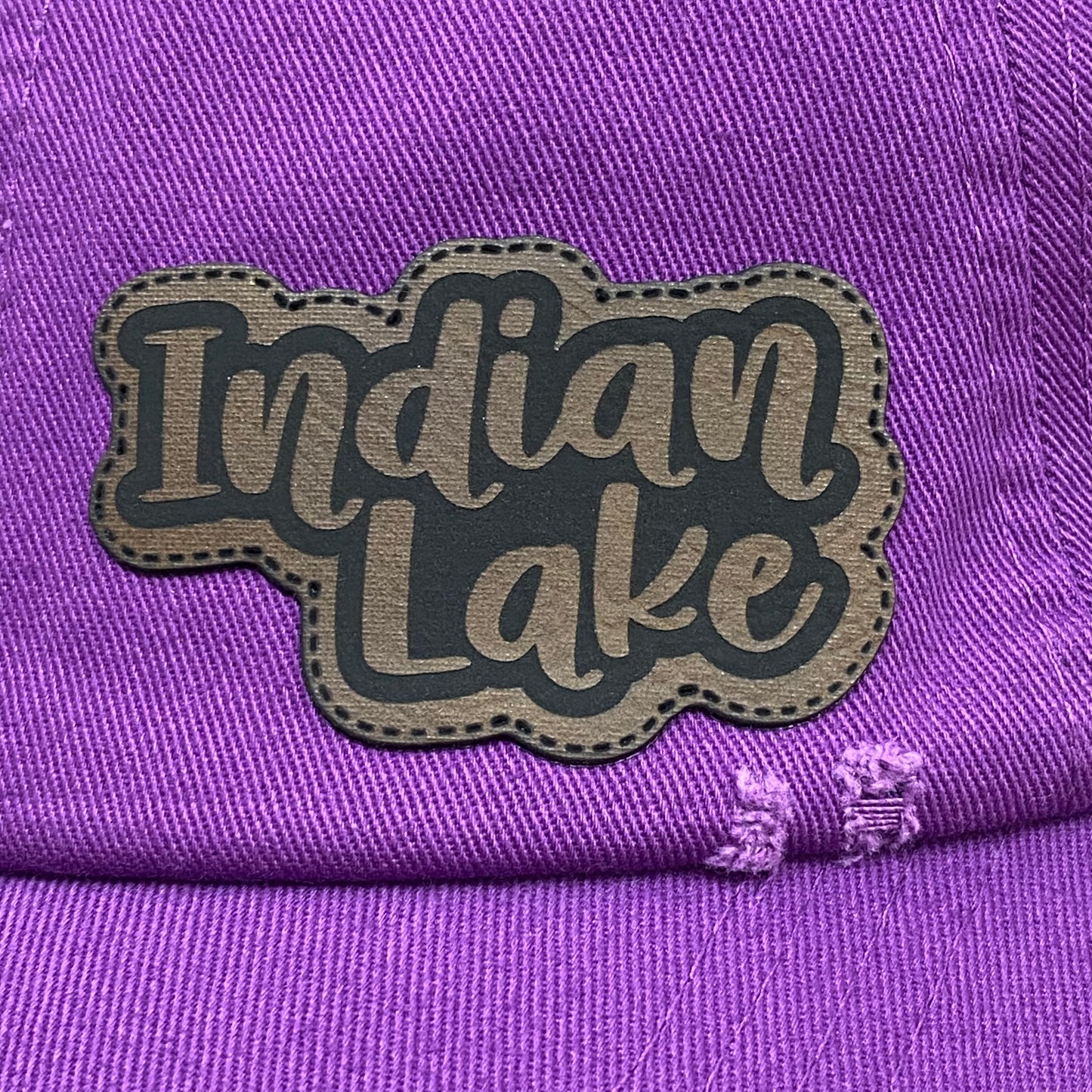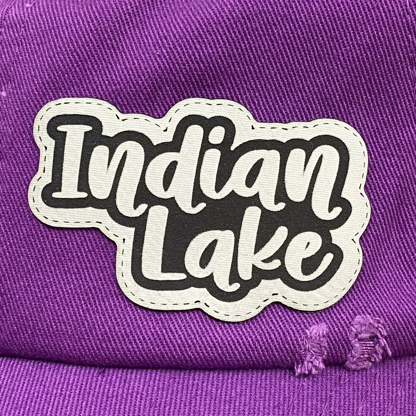 Indian Lake patch baseball cap in a rugged purple ball cap. Choose the patch color of choice at check out.