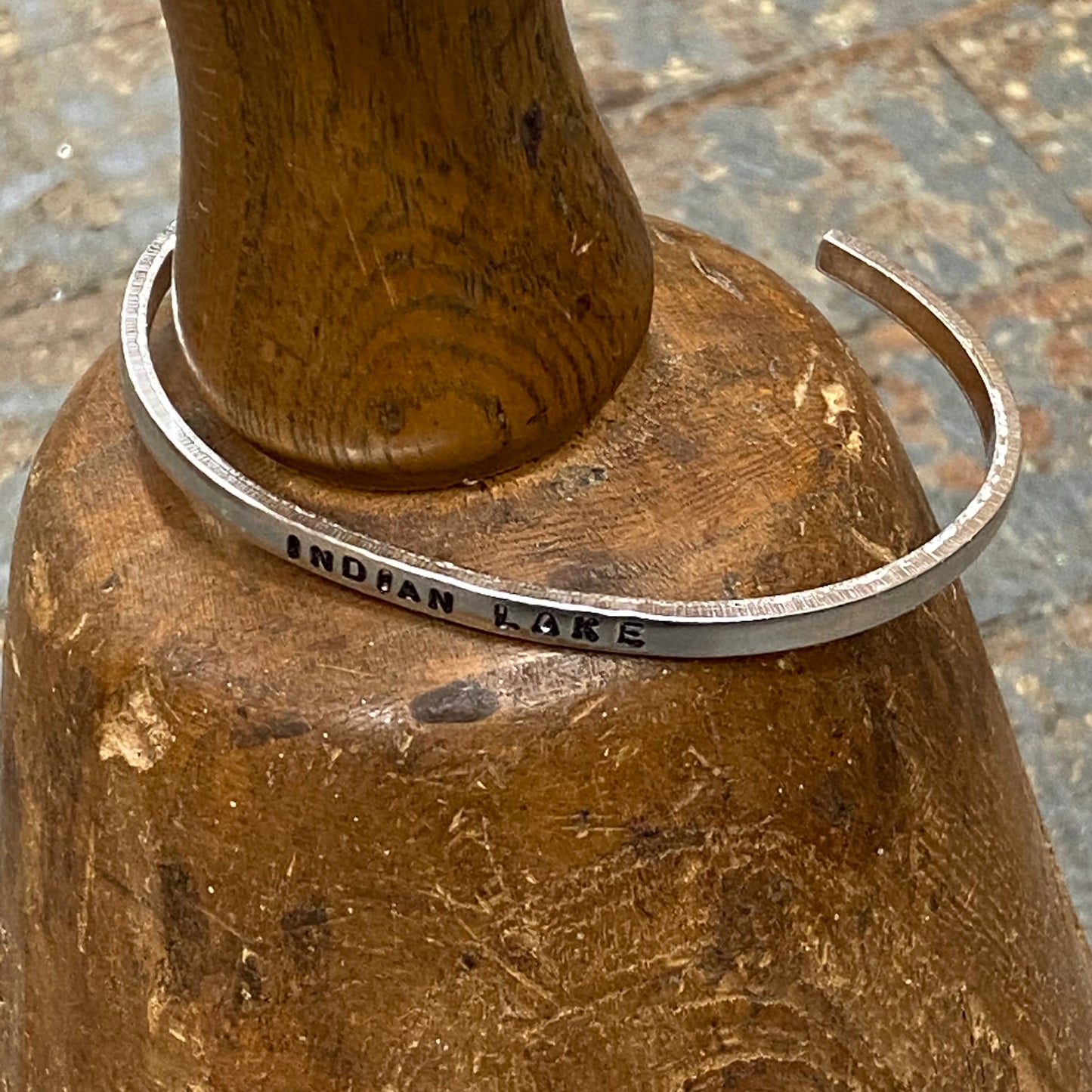 Indian Lake Silver Plated Skinny Custom Stamped Cuff Bracelet