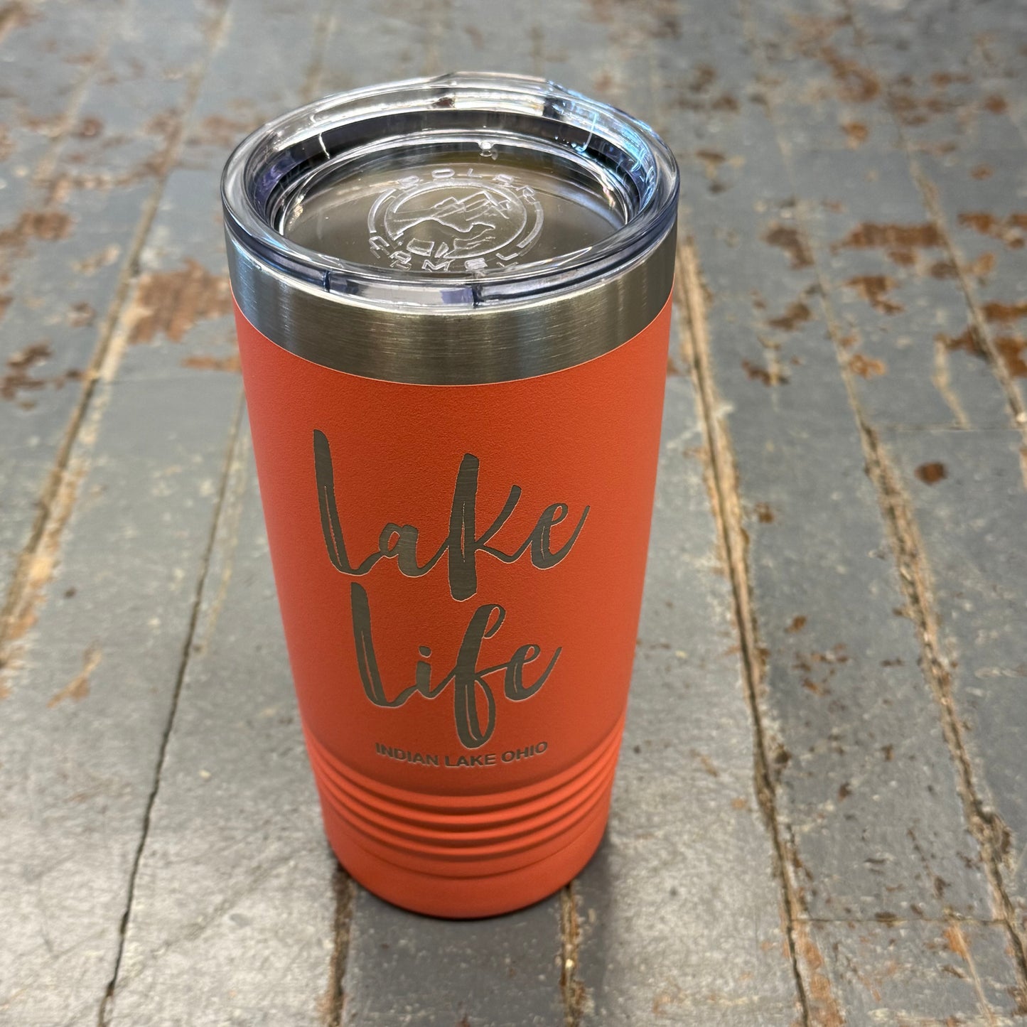 Lake Life Indian Lake Ohio Laser Engraved Stainless Steel 20oz Wine Beverage Drink Travel Tumbler Coral