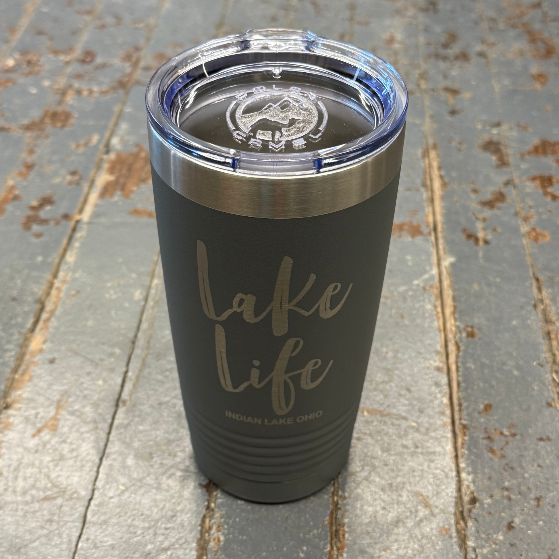 Lake Life Indian Lake Ohio Laser Engraved Stainless Steel 20oz Wine Beverage Drink Travel Tumbler Grey