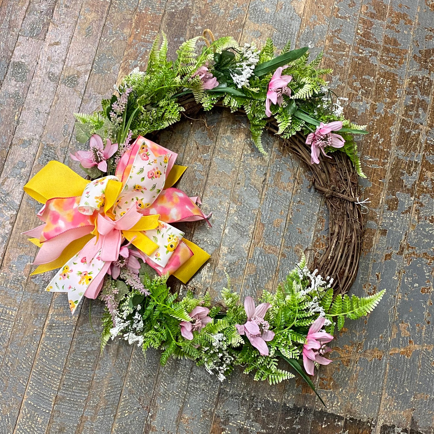 Pink Showy Medinilla Hyacinth Spring Floral Grapevine Holiday Wreath Door Hanger