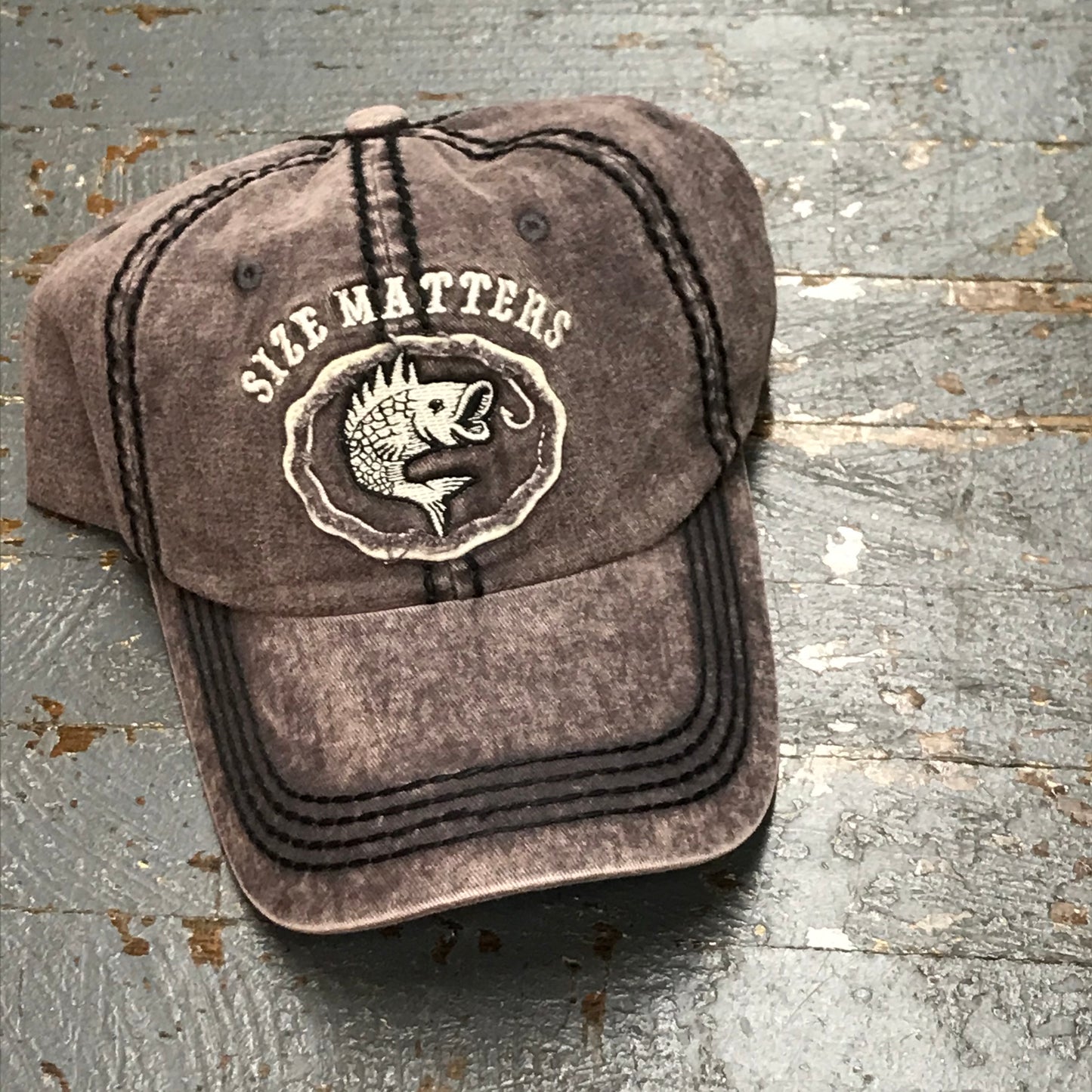 Size Matters Fishing Hat Faded Grey Embroidered Ball Cap