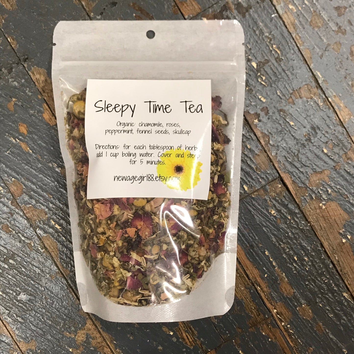 Sleepy Time Tea is intended to help relax you and make you sleepy. Chamomile is commonly regarded as a mild tranquilizer or sleep inducer. Roses are known for relaxing the nervous system. Peppermint and fennel with help to settle the stomach. This Tea is great after dinner.