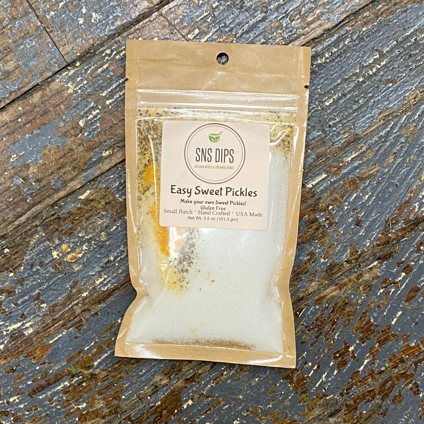 What's better than making your own sweet pickles(think bread and butter pickles)? Simply add sliced pickle cukes or cucumbers, one sweet onion (sliced), 2 cups of apple cider vinegar and bag contents into a large bowl. Shake, refrigerate for 48 hours, and enjoy!