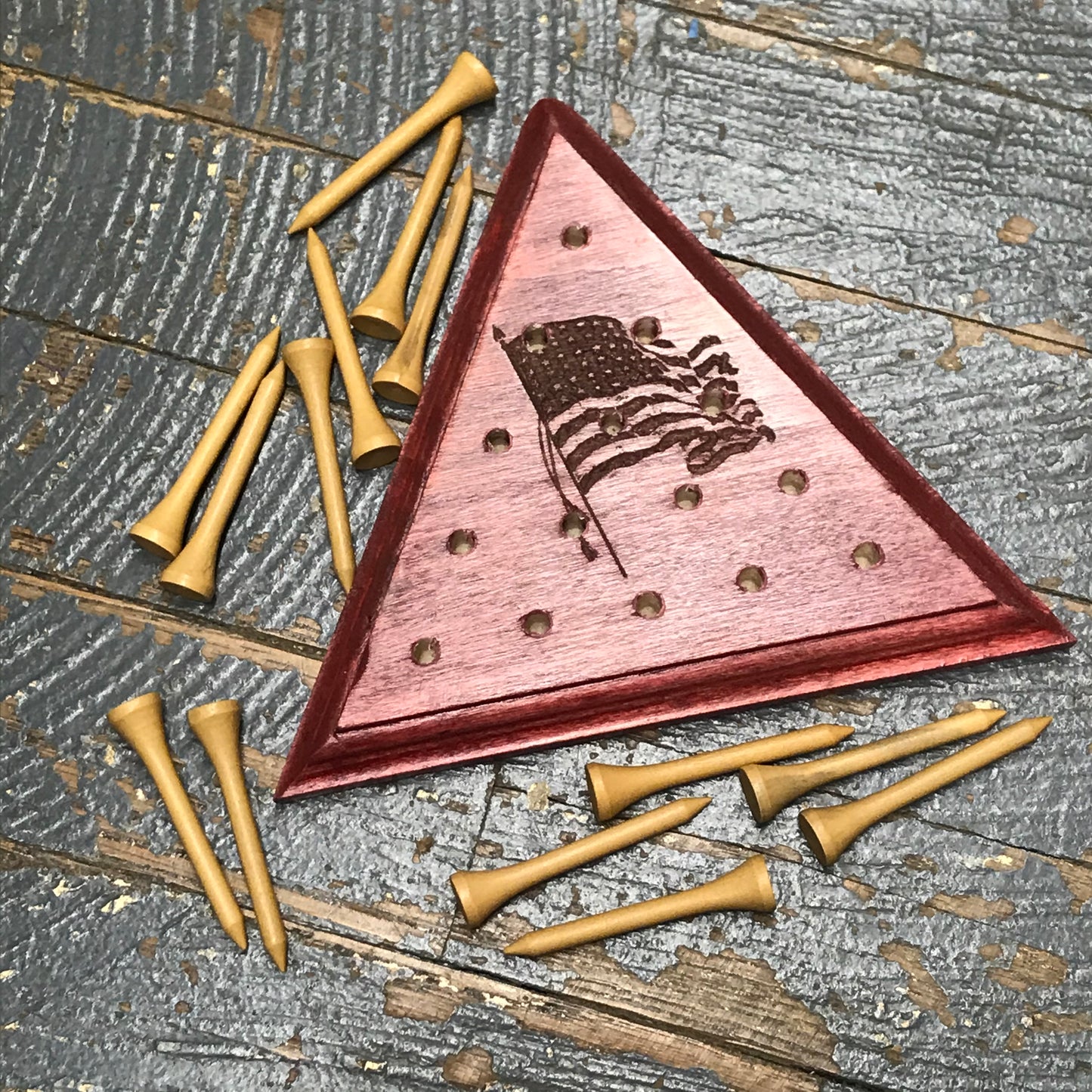 Wooden Tricky Triangle Golf Tee Peg Game American Flag
